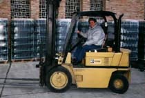 El JOCAFE en una de les carretilles elevadores que durant 19 anys va estar conduint.